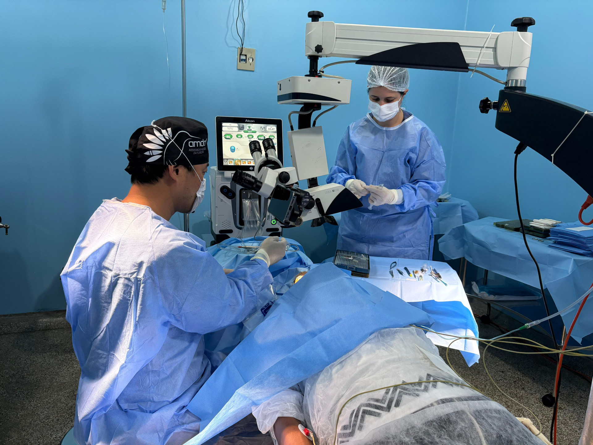 Durante o período do mutirão, pacientes e acompanhantes estão alojados em uma escola municipal do centro de Itamarati, organizada e adaptada para garantir acompanhamento contínuo no pré e no pós-operatório. O espaço foi adaptado para a permanência das famílias, com redes instaladas nas salas e equipes de saúde em monitoramento permanente.